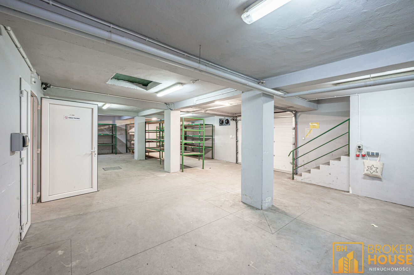 Wyraźnie wydzielona przestrzeń handlowa, biurowa i magazynowa.